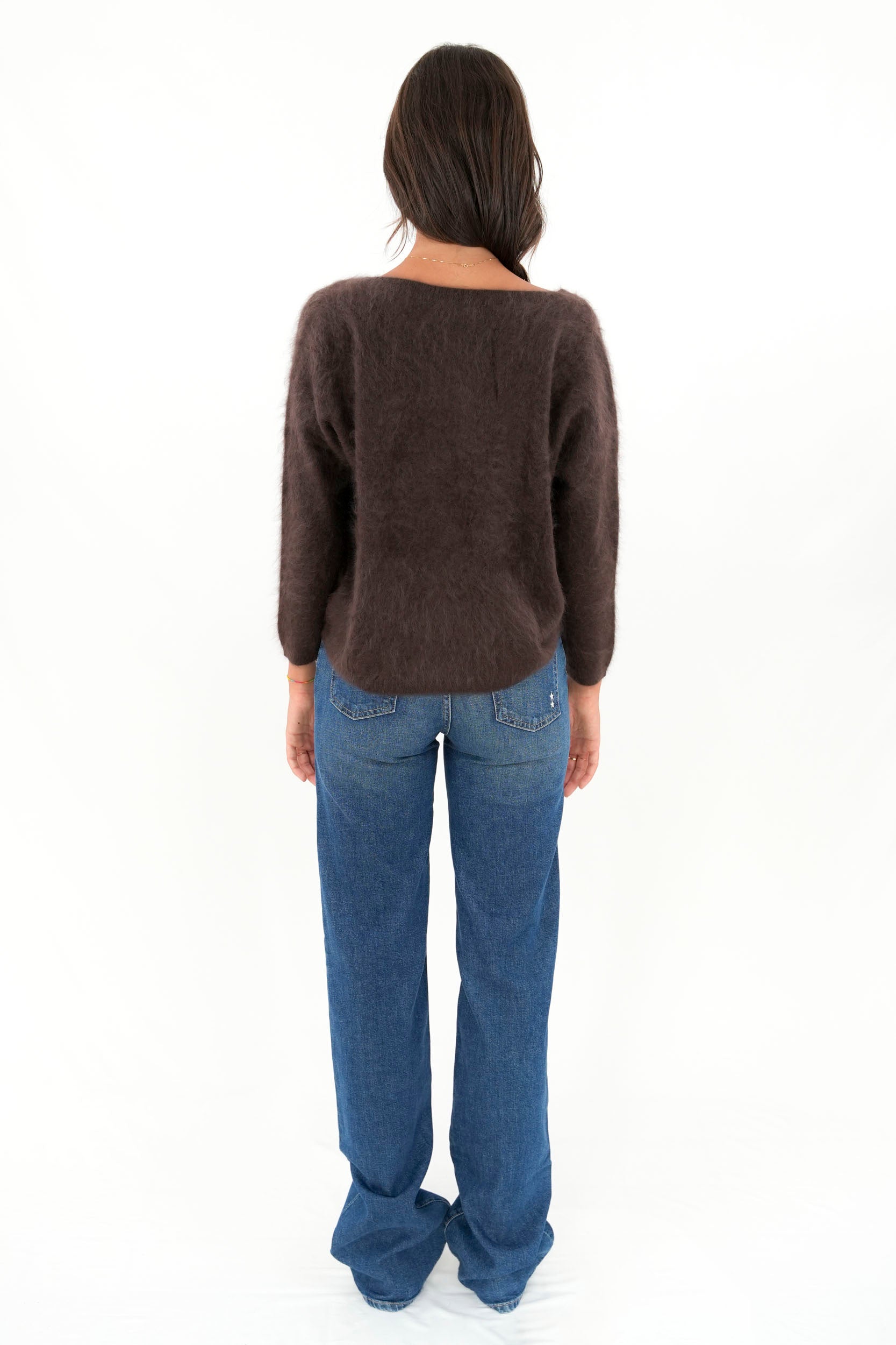 Pullover scollo a V oversize pelo lungo