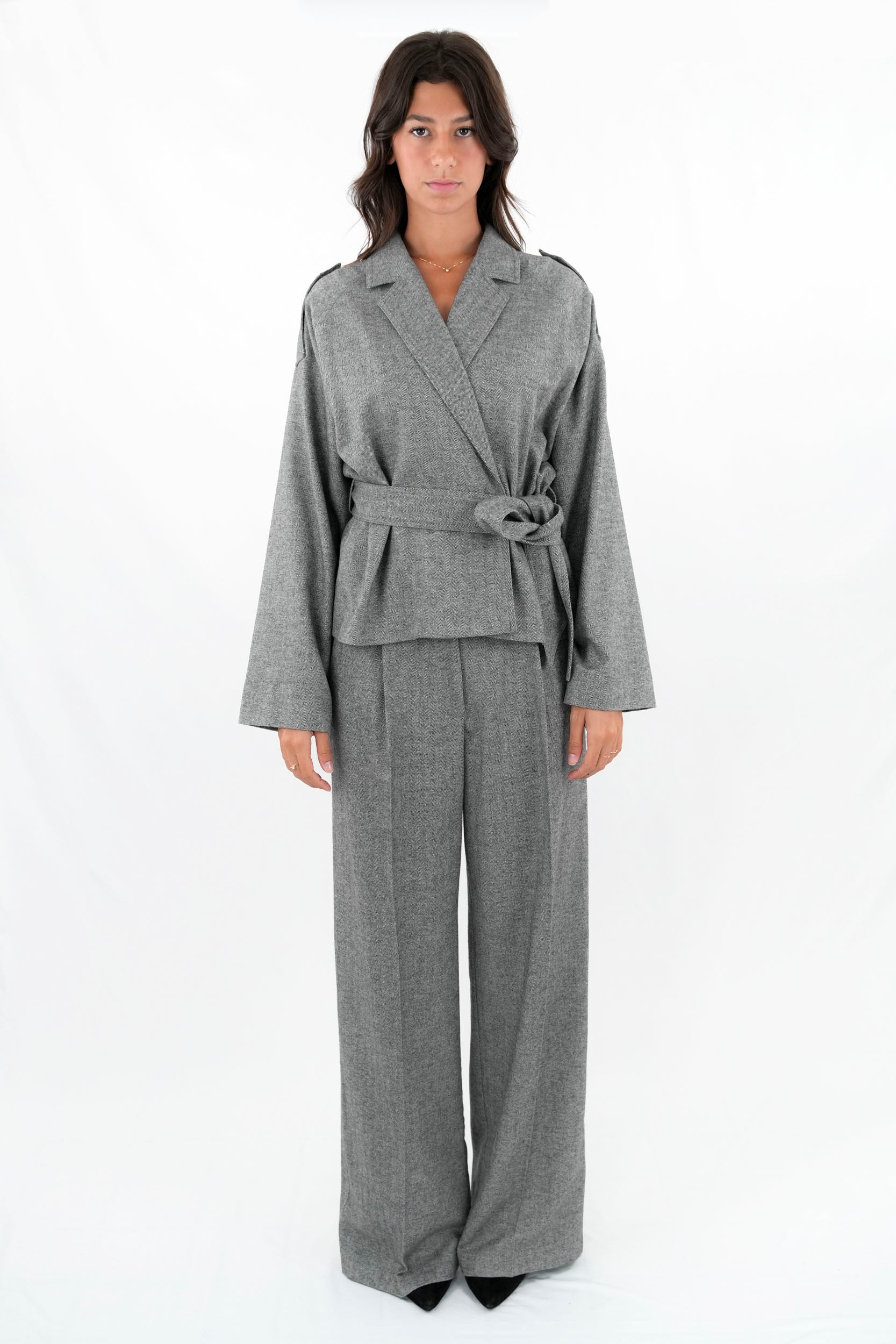 - Esterno: 40% poliestere 30% viscosa 30% lana